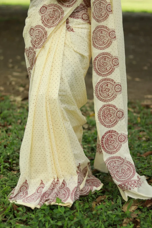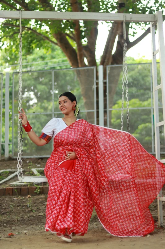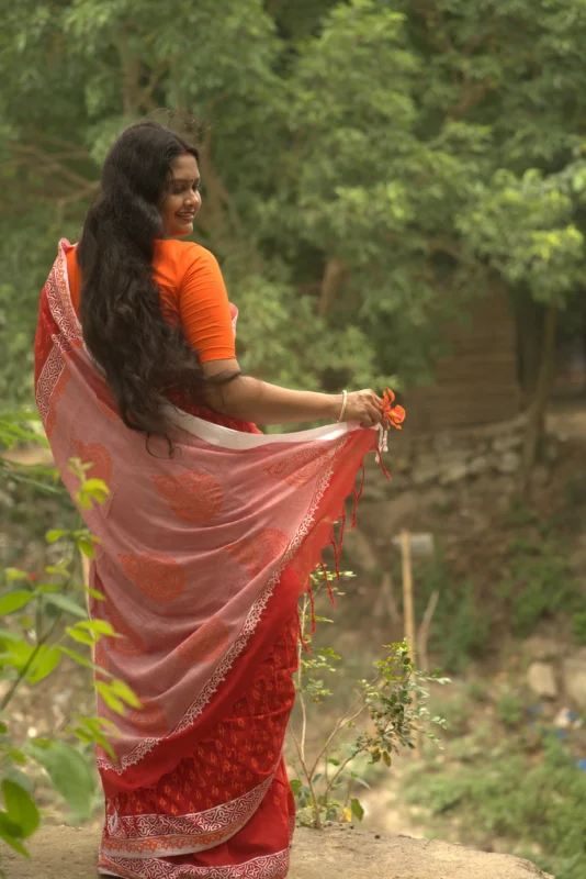 Raktabindu Muslin – রক্তরাঙা লালে শোভিত হাতের ব্লকপ্রিন্ট শাড়ি
