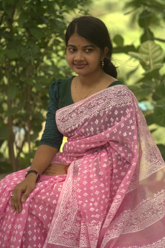সেমি মসলিন শাড়ি – হালকা গোলাপিতে হাতের ছোঁয়ায় নরম রূপ
