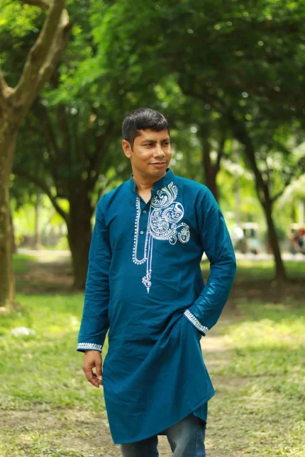 এই পাঞ্জাবির প্রতিটি তুলির ছোঁয়ায় মেলে এক আত্মবিশ্বাসী ভঙ্গি – যা উৎসব কিংবা বিয়ের আয়োজনে আপনাকে আলাদা করে তুলবে।