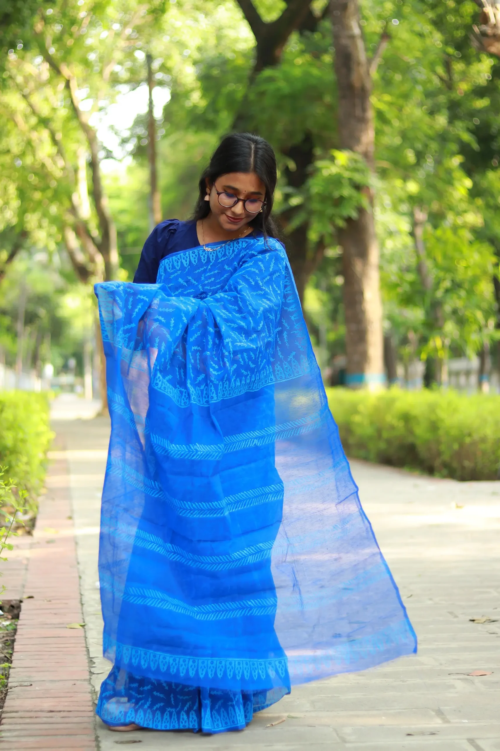 Neel Pakhi হাফ সিল্ক – হ্যান্ড পেইন্টেড ঐতিহ্য আর আধুনিকতার নীল গাঁথুনি